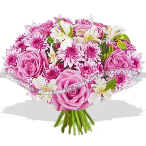 С любовью и нежностью - букет из кустовых хризантем, роз и альстромерийот 3 673 руб. 5 054 руб.Купить