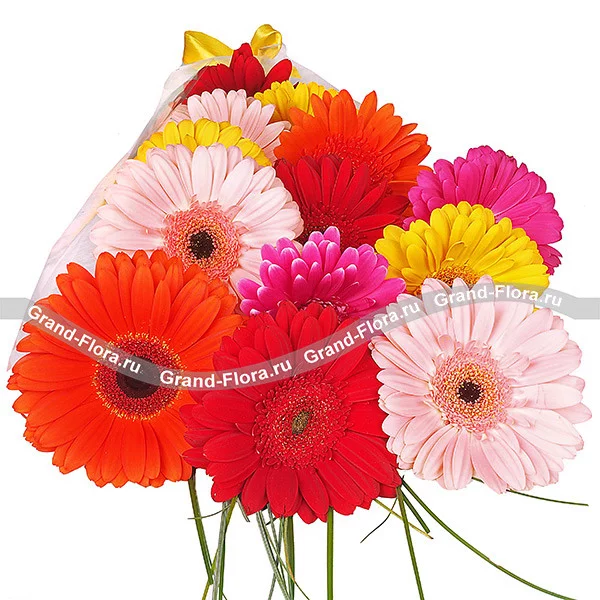 Очаровательный букет из гербер поможет вам сделать незабываемый подарок близкому и родному вам человеку. Изобилие ярких красок, существенно поднимут настроение любой особе. Отправив такой букет гербер с доставкой, вы заставите получателя улыбнуться и подумать о хорошем.